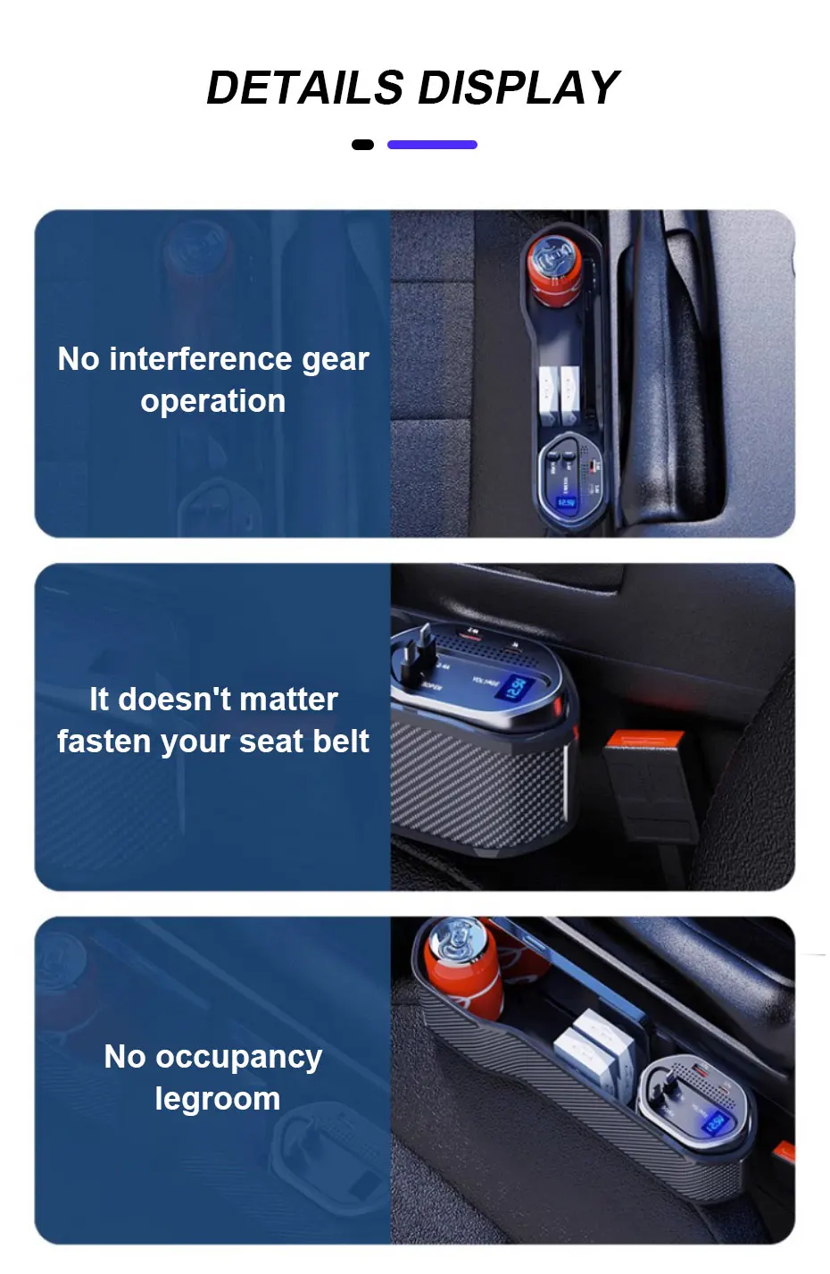 【مع وظيفة الشحن 】: صندوق تخزين الفجوة مقعد متعدد الوظائف لديه وظيفة الشحن ، شحن سريع للغاية ، لديه وظيفة العرض الرقمي ، ويظهر العرض الرقمي الجهد من بطارية السيارة. 【الهدف 】: منظم مقعد السيارة بين المقاعد يحافظ على الأشياء من السقوط ، بشكل فعال لمنع العناصر الصغيرة الخاصة بك من السقوط في فجوة المقعد. 【سهلة التركيب 】: إدراج منظم مقعد السيارة مباشرة ، وملء الفجوة ، وملء الفجوة بين المقعد والعتاد والمقعد ، وتوسيع مساحة التخزين في السيارة. 【التصميم】: مقعد السيارة الفجوة حشو منظم ، تصميم مدروس ، لا تأخذ مساحة. بعد التثبيت ، فإنه لا يؤثر على تعديل المقعد وتشغيل التحكم المركزي ، ولا يشغل مساحة الساق. 【سعة كبيرة 】: مقعد السيارة الفجوة منظم صندوق تخزين ، ترقية سعة كبيرة ، بسهولة وضع محافظ ، الهواتف النقالة ، مفاتيح ، المشروبات وغيرها من البنود. تناسب دقيق ، مستقر وليس shaking.